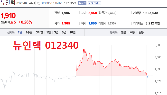 전기차 관련주 TOP 10 뉴인텍 (012340)
