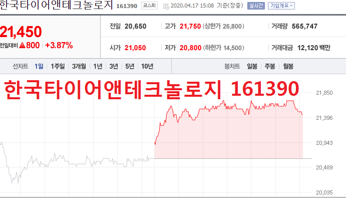 전기차 관련주 TOP 10 한국타이어앤테크놀로지 (161390)