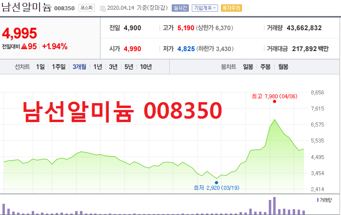 이낙연 관련주 테마주 TOP 7 대장주 남선알미늄 (008350)