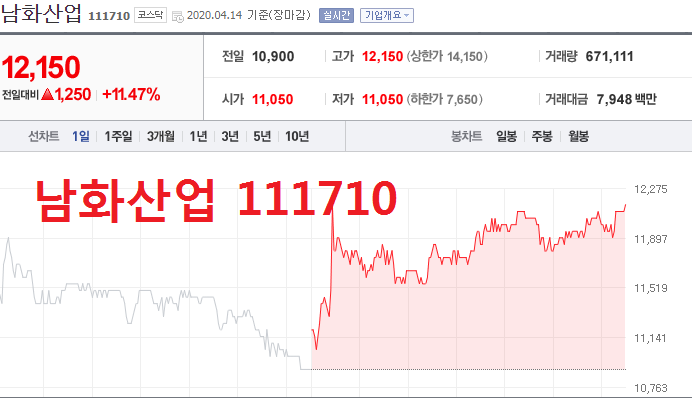 이낙연 관련주 테마주 TOP 7 대장주 남화산업 (111710)