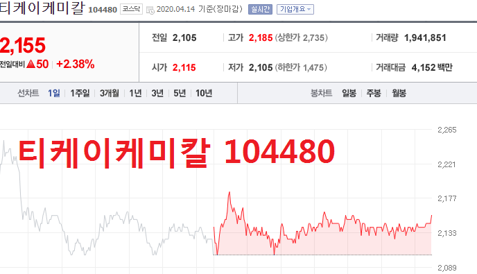 이낙연 관련주 테마주 TOP 7 티케이 케미칼 (104480)