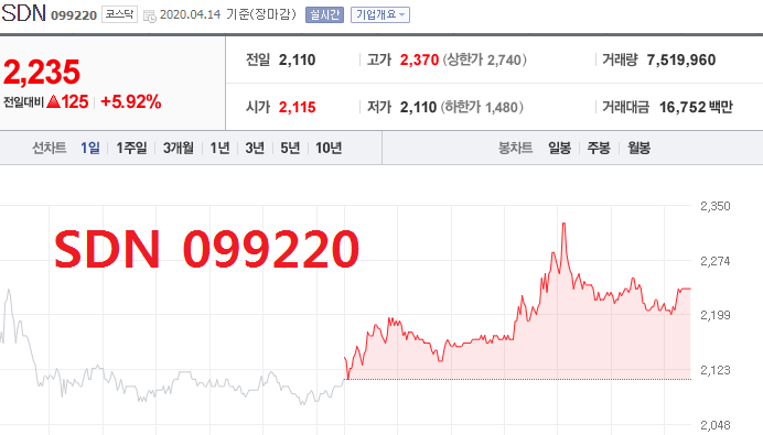 이낙연 관련주 테마주 TOP 7 SDN (099220)