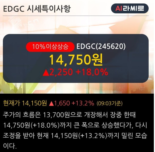 4월 14일 13시 기준 전일가 기준 약 6% 상승