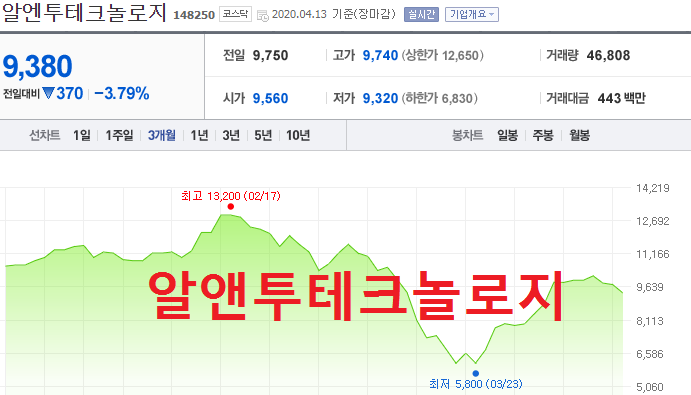 근래에 비해 약 4,000원 상승 (시가총액이 낮고, 변동폭이 큰 종목이기에 8,700원 이하 매수추천)