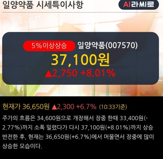 코로나 치료제 관련주 TOP 10 일양약품 (007570)