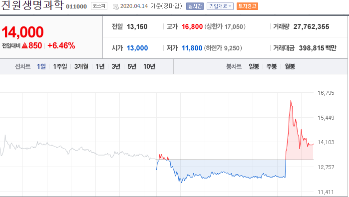 코로나 치료제 관련주 TOP 10 진원생명과학 (011000)