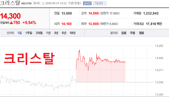 코로나 치료제 관련주 TOP 10 크리스탈 (083790)