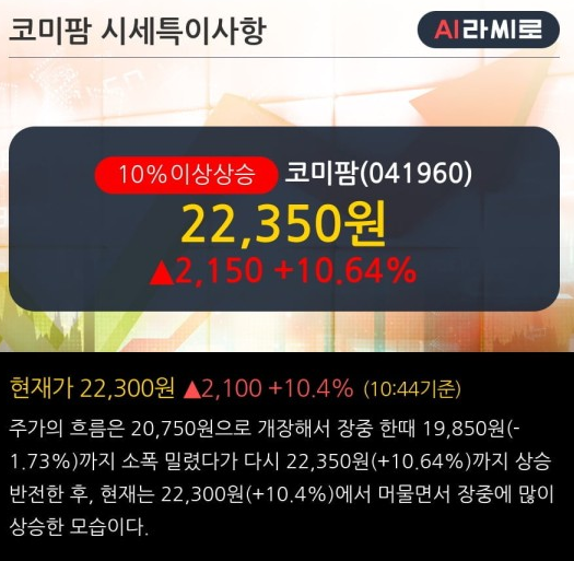 코로나 치료제 관련주 TOP 10 코미팜 (041960)