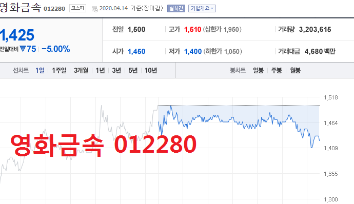 홍준표 관련주 테마주 TOP 7 영화금속 (012280)