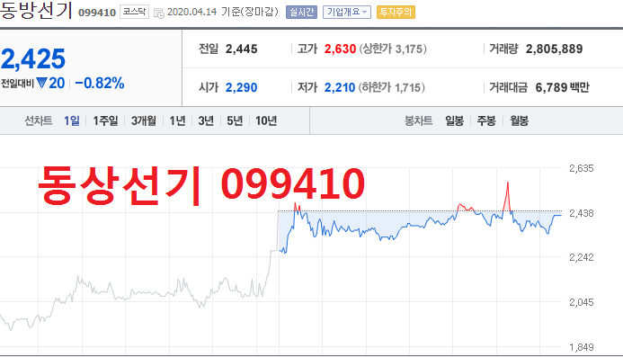 홍준표 관련주 테마주 TOP 7 동방선기 (099410)