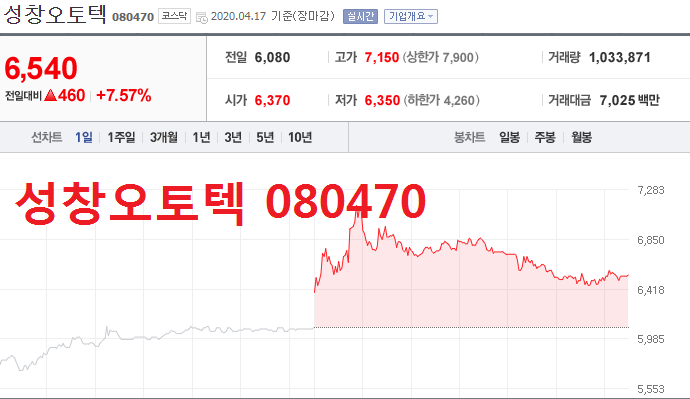 수소차 관련주 TOP 7 성창오토텍 (080470)