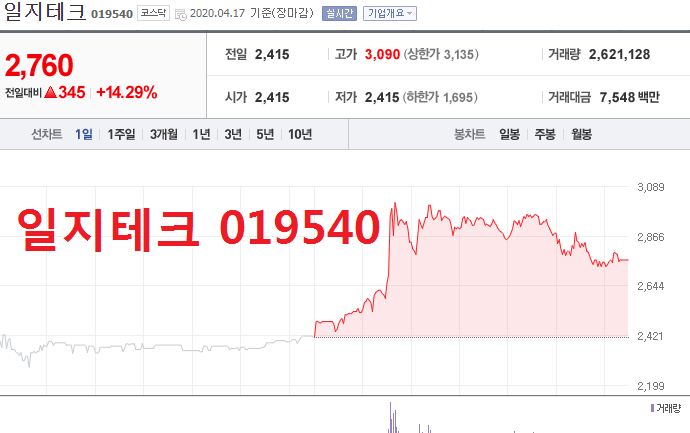 수소차 관련주 대장주 TOP 7 일지테크 (019540)
