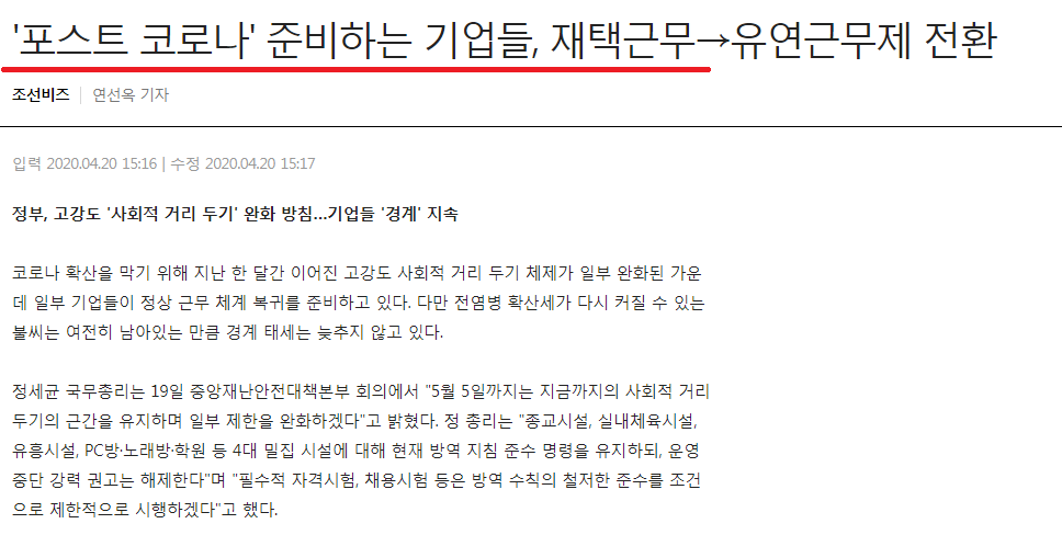최근 코로나 사태와 더불어 앞으로는 어떤 기업이든 간에 재택근무가 유행할 예정,