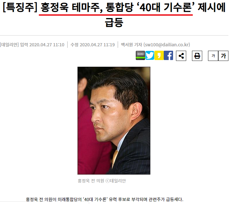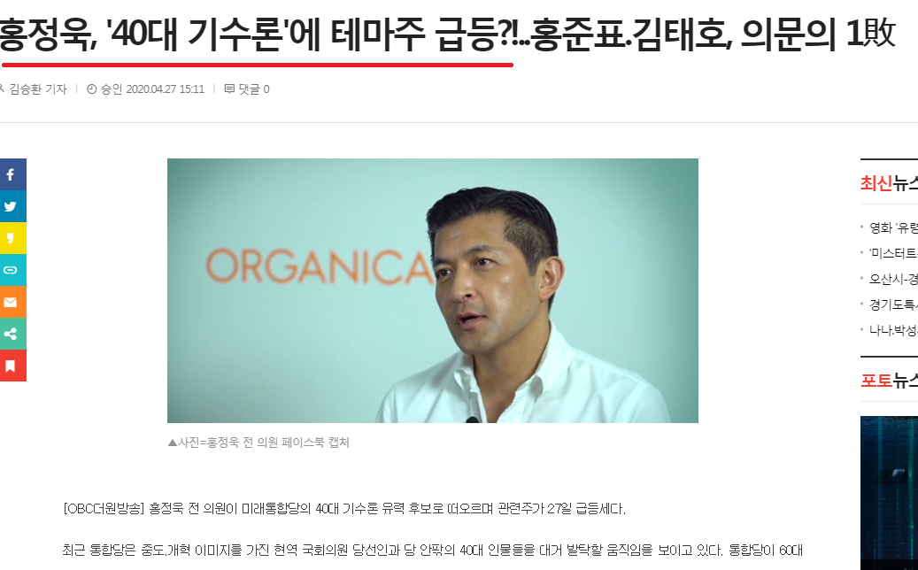 홍정욱 전 의원이 미래 통합당의 ' 40대 기수론 ' 유력 후보로 부각