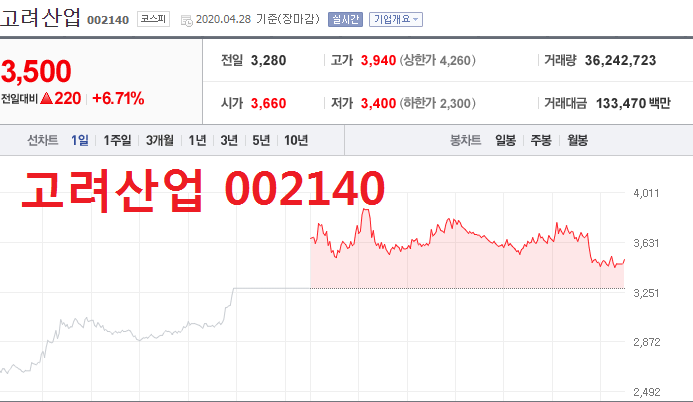홍정욱 관련주 TOP 7 고려산업 (002140)