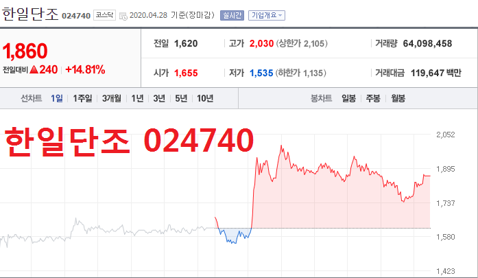 홍정욱 관련주 TOP 7 한일단조 (024740)