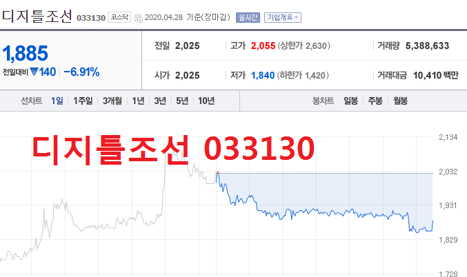 홍정욱 관련주 TOP 7 디지틀조선 (033130)