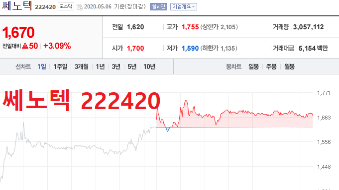 희토류 관련주 TOP 7 쎄노텍 (222420)