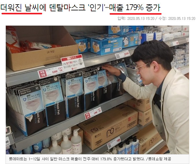 덴탈 마스크를 찾는 수요 급증가, 방역당국 또한 덴탈 마스크를 착용해도 된다고 하며 판매량이 크게 늘어