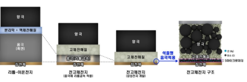 전고체 배터리란 전지 양극과 음극 사이에 있는 전해질을 기존 액체에서 고체로 대체하는 차세대 배터리