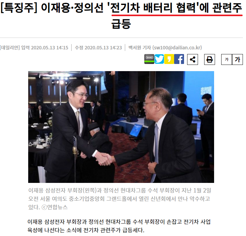 이번 이재용과 정의선의 만남으로 전고체 배터리 관련주 수혜주 부각 "