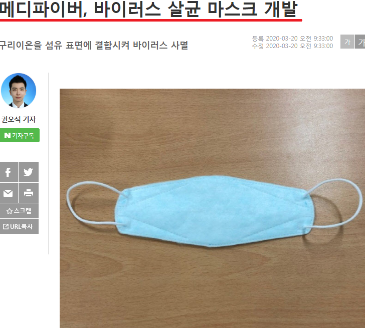 블루마스크에는 구리이온을 넣어 마스크에 접촉된 바이러스를 차단하는 기능까지