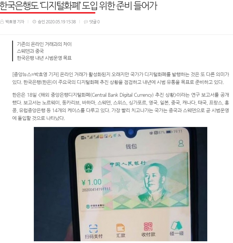 CBDC 디지털 화폐는 비트코인 등 민간이 만든 암호화폐와 다르게, 중앙정부에서 통제하는 디지털 화폐