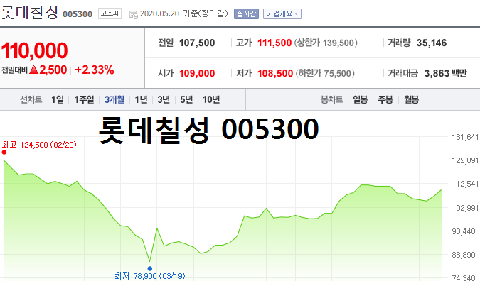 롯데칠성 005300