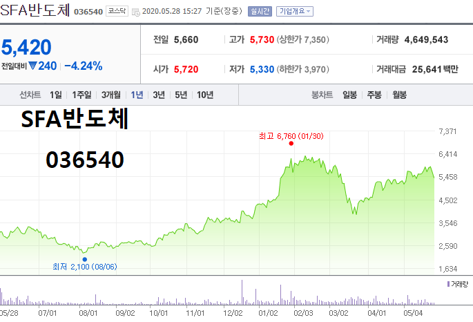 - 2020.05.15 SFA반도체, 시스템반도체 테마 상승에 6.3% 상승