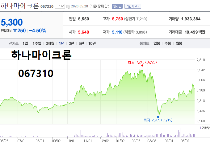 - 2020.05.15 하나마이크론, 시스템반도체 테마 상승세 탑승