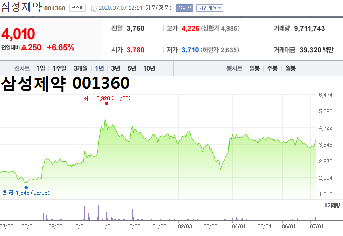 - 2020.07.06 中 페스트 발병 소식에 삼성제약 등 관련주 상승