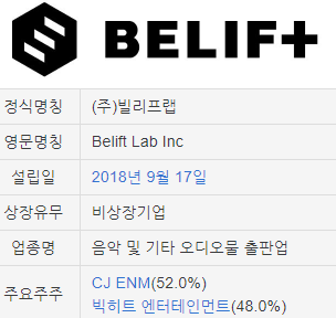 " CJ ENM은 빅히트 엔터테인먼트와 52 : 48 비율로 투자하여 70억 규모의 빌리프랩을 설립, 운영 중