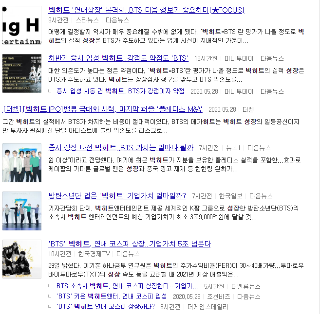 <BTS 빅히트 관련주 TOP 7 총정리>
