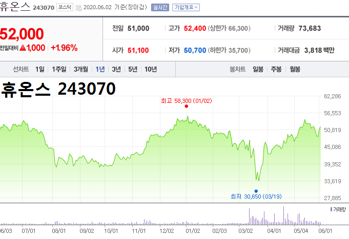 - 2020.06.01 휴온스, 코로나 19 심각 국가에 긴급 의약품 수출 ↑
