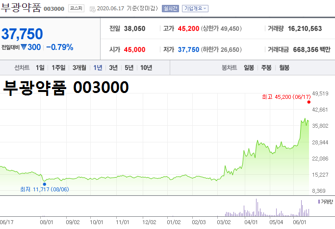 - 2020.06.17 부광약품, '덱사메타손' 코로나 19 치료제 긴급 승인 주가 상승