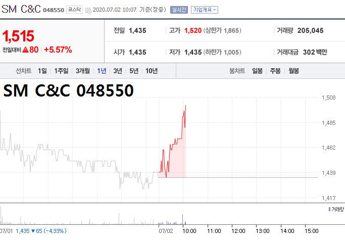 - 2020.07.01 한한령 완화 소식에 관련 업종 기대감 상승