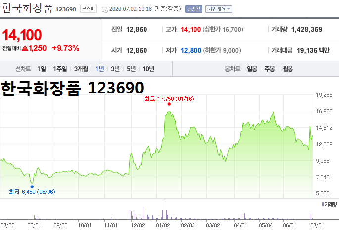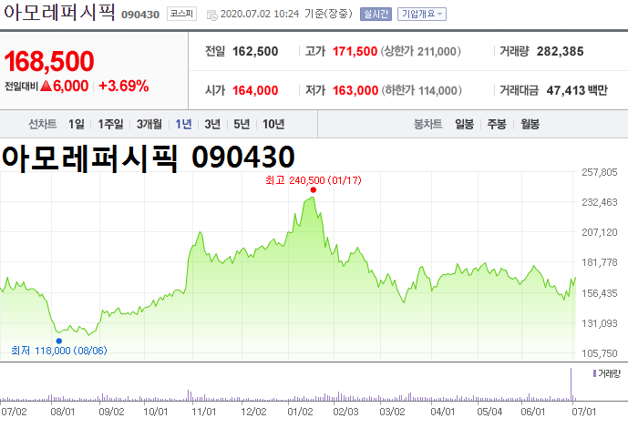- 2020.06.30 한한령 해제 기대감.. 아모레퍼시픽 등 중국 소비주 급등