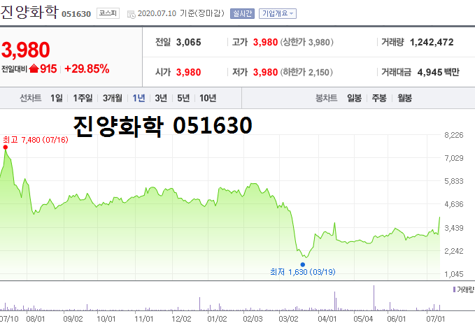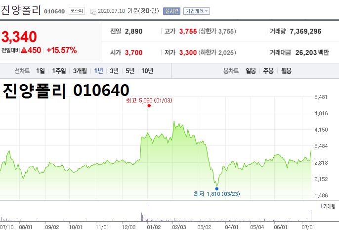 - 2020.07.10 진양산업, 상한가 기록