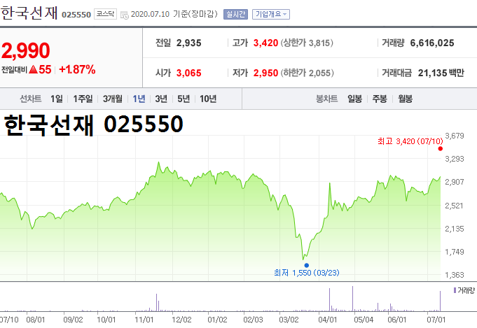 - 2020.03.13 한국선재, 20억 규모 자사주 취득 신탁계약 체결