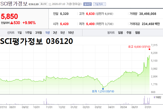 - 2020.07.07 SCI평가정보, 최대주주 지분 매각 추진에 기대감 장중 상한가