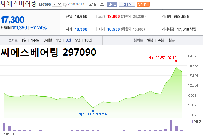 - 2020.06.29 씨에스베어링, 300조 규모 그린뉴딜에 상승세