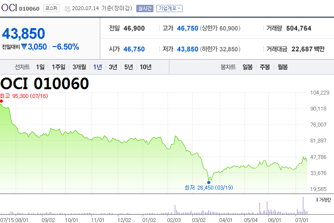 - 2020.07.09 태양광 관련주 OCI, 정부 그린뉴딜 정책에 강세
