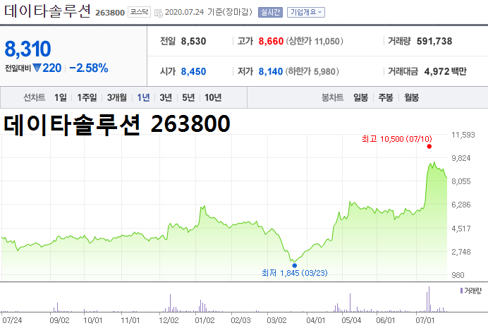 - 2020.07.10 데이타솔루션, 한국판 뉴딜 기대감에 이틀째 강세