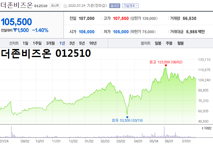 - 2020.07.14 한화투자증권 '더존비즈온, 디지털 뉴딜 대형 수혜주'