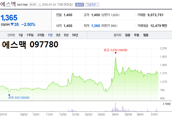 - 2020.07.13 에스맥, 코로나 19 혈장치료제 관련주 강세