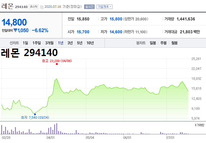 - 2020.07.13 레몬, 혈장치료제 임상시험 시작 소식에 강세