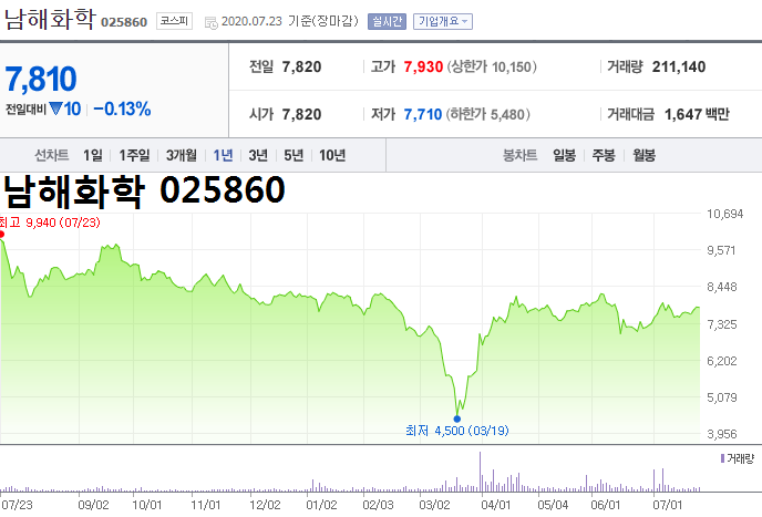 - 2020.07.06 남해화학, 태풍 및 장마 테마 상승세