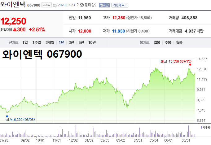 ▲와이엔텍 067900