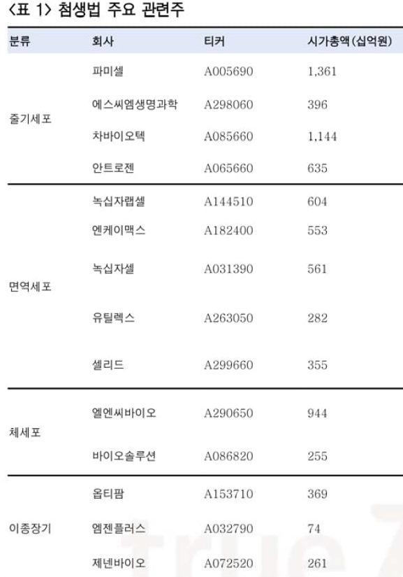 줄기세포·면역세포·체세포 치료제 및 이종장기 개발사 등이 첨생법 시행으로 직접적 혜택을 받을 것으로 예상되는 가운데 투자자들의 관심이 높아지는 관련 종목들에 대해 알아보자.