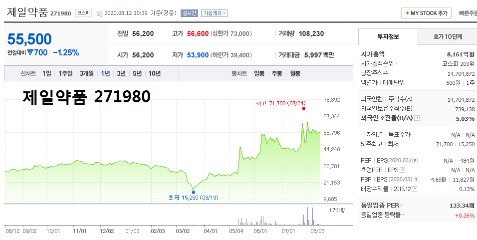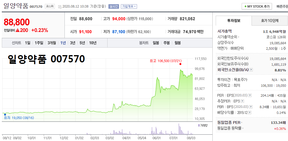 - 2020.08.04 일양약품 주가 급등, 코로나 19 백신 관련주로 주목